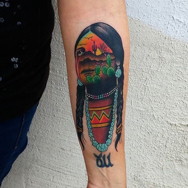Tattoo Uploaded By Stacie Mayer Native American And Desert Scene Double Exposure Traditional Tattoo By Ry Tang Traditional Traditionaltattoo Doubleexposure Rytang Silhouette Face Nativeamerican Turquoise Tattoodo